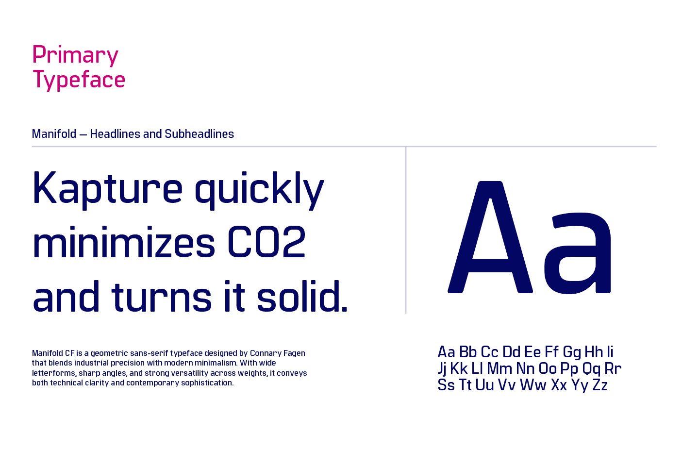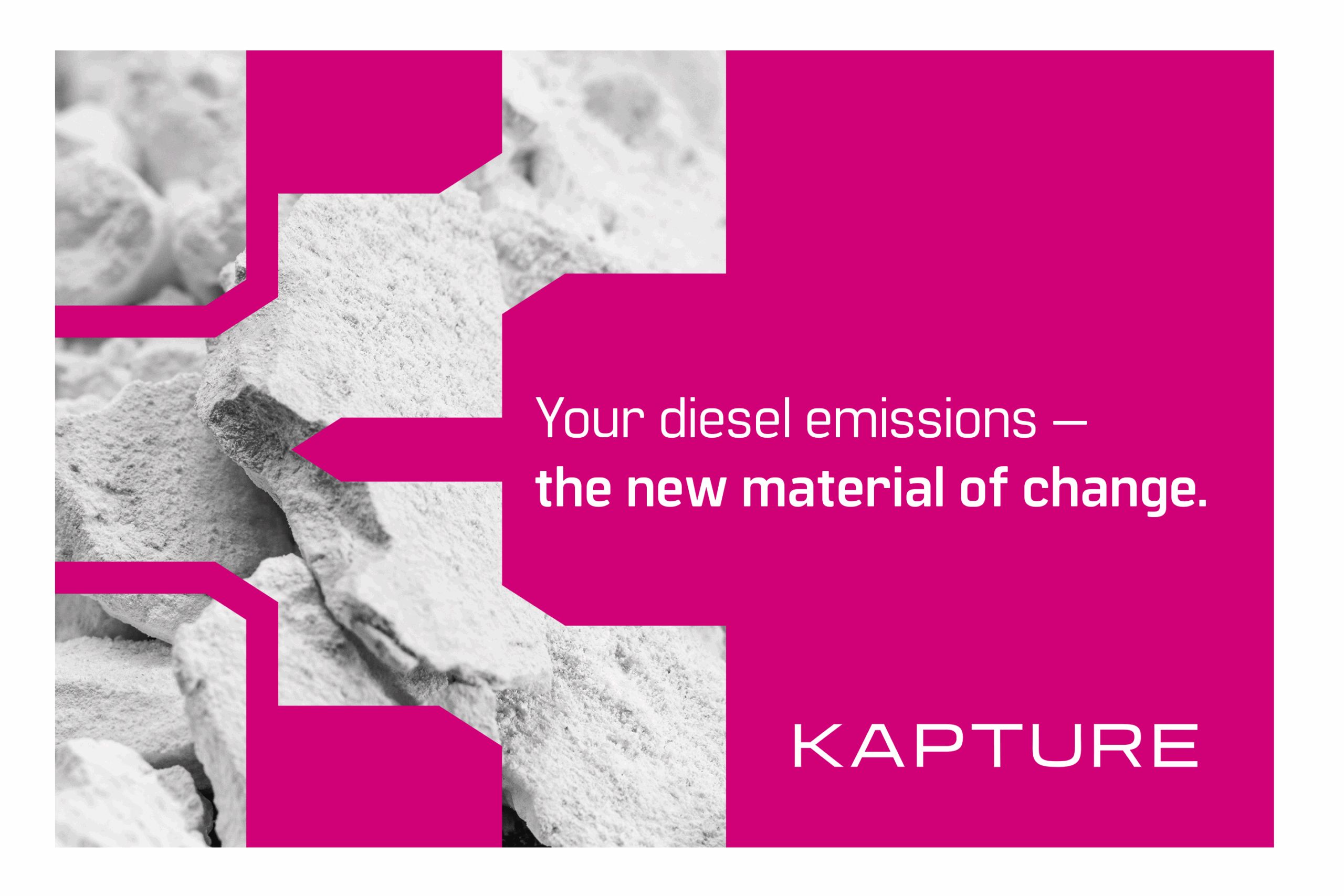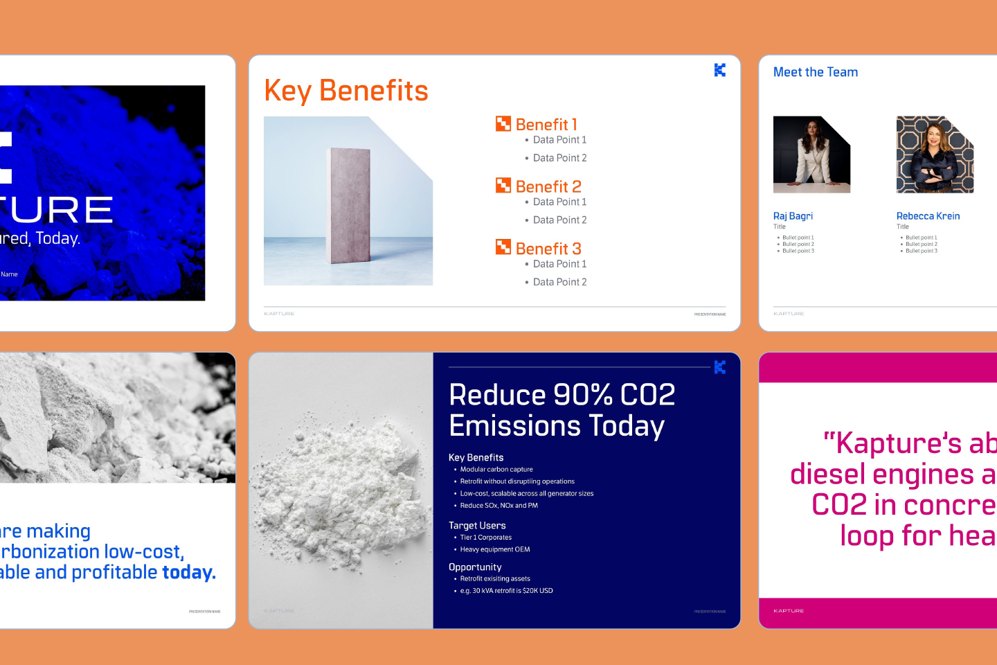 Founded by Raj Bagri in 2025, Kapture is a carbon capture company redefining how heavy industry approaches decarbonization. Built on a mission to prove that clean technology can be both affordable and scalable, Kapture’s modular system retrofits directly onto diesel generators, able to capture up to 90% of CO₂ emissions at the source while converting waste into valuable building materials. I developed a visual identity that reflects this balance between innovation and industry, nimble enough for emerging technology yet grounded in the grit of construction and energy sectors. The design system pairs bold typography and simplified geometry with a flexible framework that scales across presentations, hardware, and field applications. The result is a brand that feels fresh, technical, and credible that allows Kapture to communicate it's dual purpose of engineering progress and closing the loop on industrial emissions.